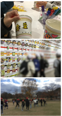 カップにイラストを描いたり中身の具材などを決めたりして、オリジナルカップヌードルを作って楽しみました。
